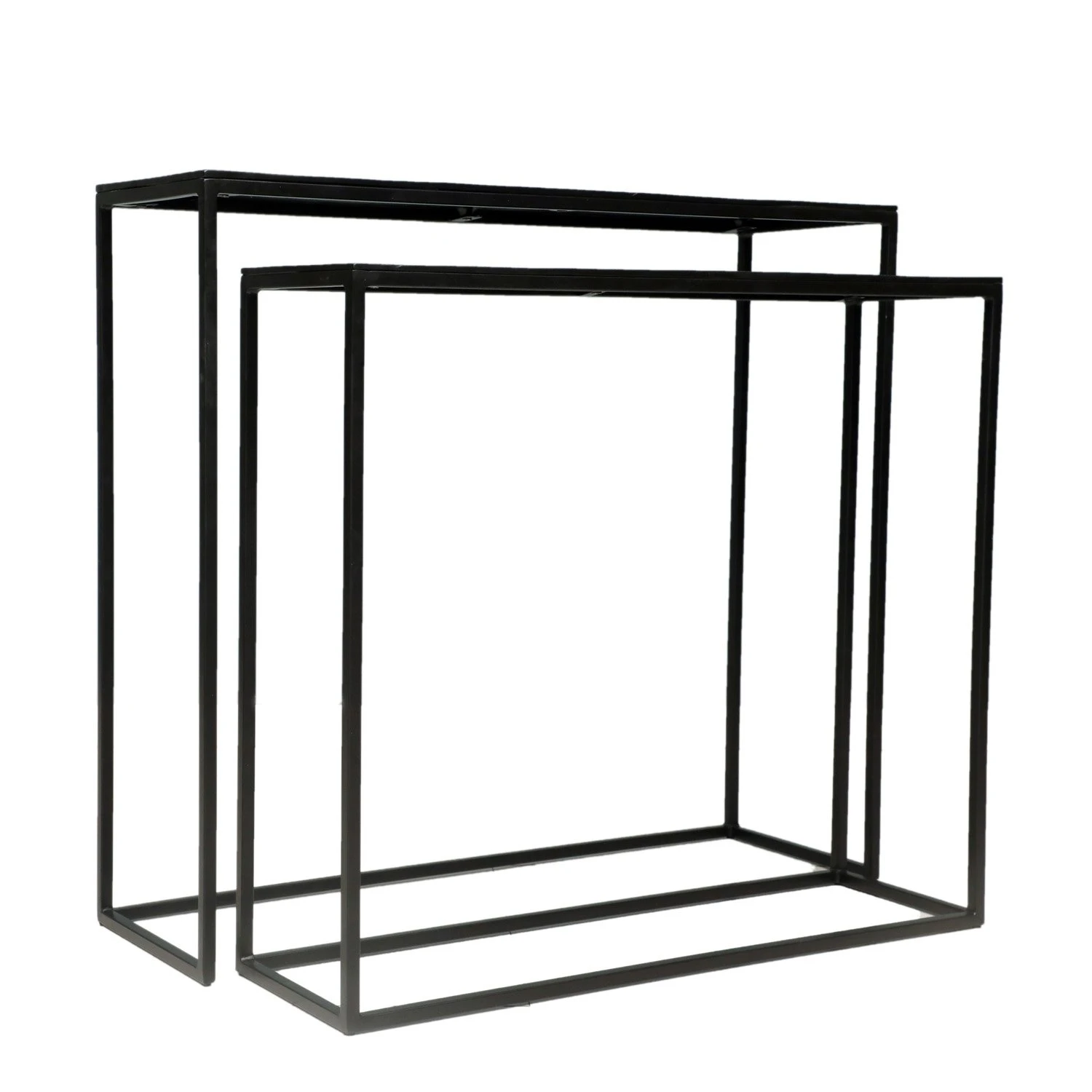 Wat is dit een stoere set bestaande uit twee mat zwarte bijzettafels! Door het hoogteverschil geven deze tafels nog meer sfeer in de woonkamer. De bijzettafel set is gemaakt van aluminium met een zwart ijzeren onderstel.