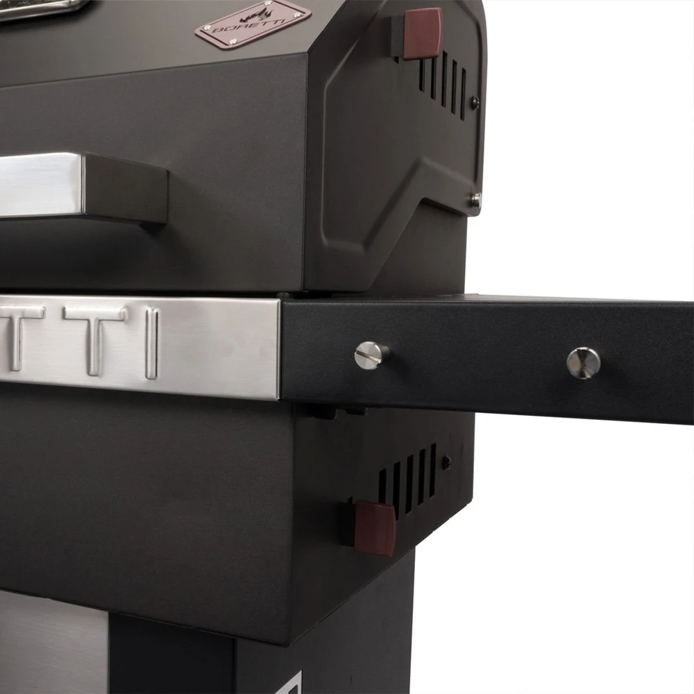 Dit strakke model heeft vier ventilatieroosters die zorgen voor de juiste luchttoevoer. Zo is het eenvoudig om de perfecte temperatuur voor de barbecue te bereiken. Met twee zijtafels heeft u genoeg werkruimte voor uw ingrediënten, schalen en kommen. Handige accessoires op de barbecue, zoals de gereedschapshaken en RVS flesopener, maken de Boretti Totti compleet!