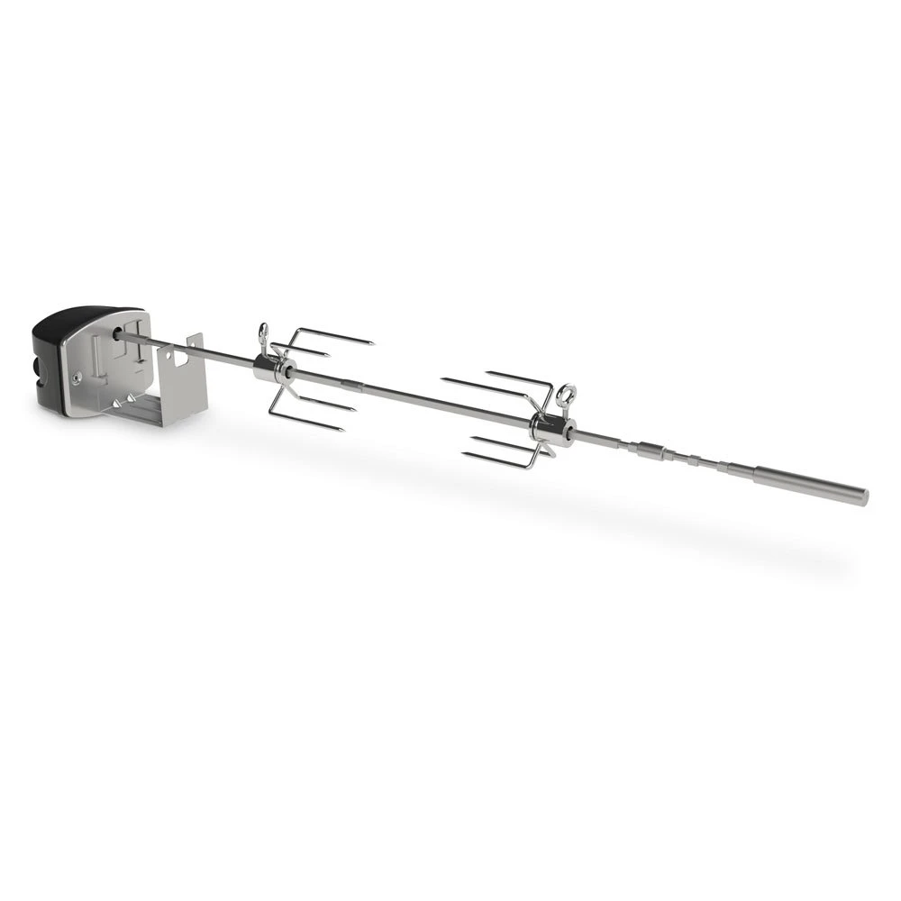 Geschikt voor de Weber Spirit 200 en 300-serie gasbuitenkeukens. Het braadspit is voorzien van twee vorken, waarmee u probleemloos kippen of grote braadstukken kunt bereiden.